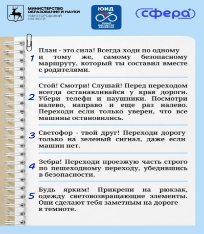 В соответствии с письмом департамента государственной политики в сфере защиты прав детей Минпросвещения России от 7 октября 2024 г. № 07-4829 министерство образования и науки Нижегородской области направляет информационные материалы по безопасности дорожного движения: